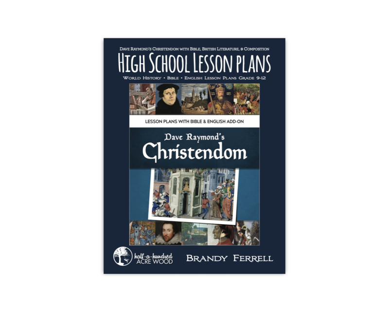 This one-year (36-week) high school-level curriculum guide provides lesson plans for up to three high school subjects: Bible, World History (Christendom/Medieval), and English. This plan may be used for just a history credit or, with the added Bible and English composition/literature assignments, it may be used to fulfill a credit in each of these three subjects using Dave Raymond's Christendom as a framework.