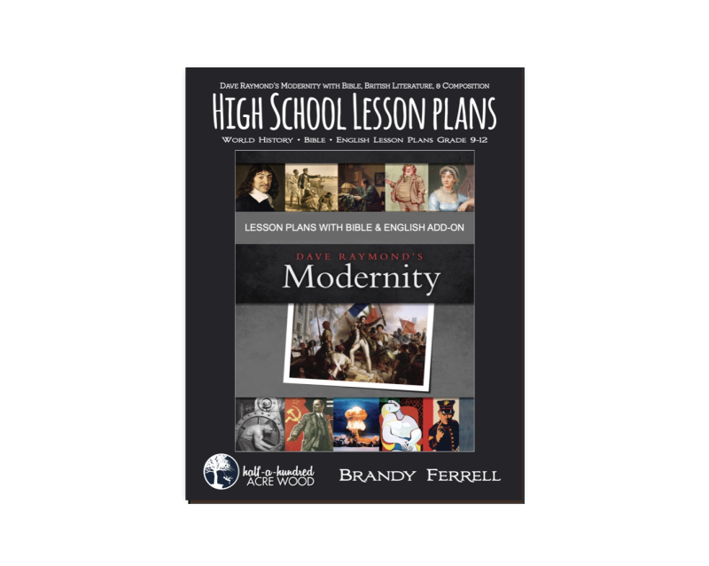 This one-year (36-week) high school-level curriculum guide provides lesson plans for up to three high school subjects: Bible, Modern World History, and English. This plan may be used for just a history credit or, with the added Bible and English composition/literature assignments, it may be used to fulfill a credit in each of these three subjects using Dave Raymond’s Modernity as a framework.