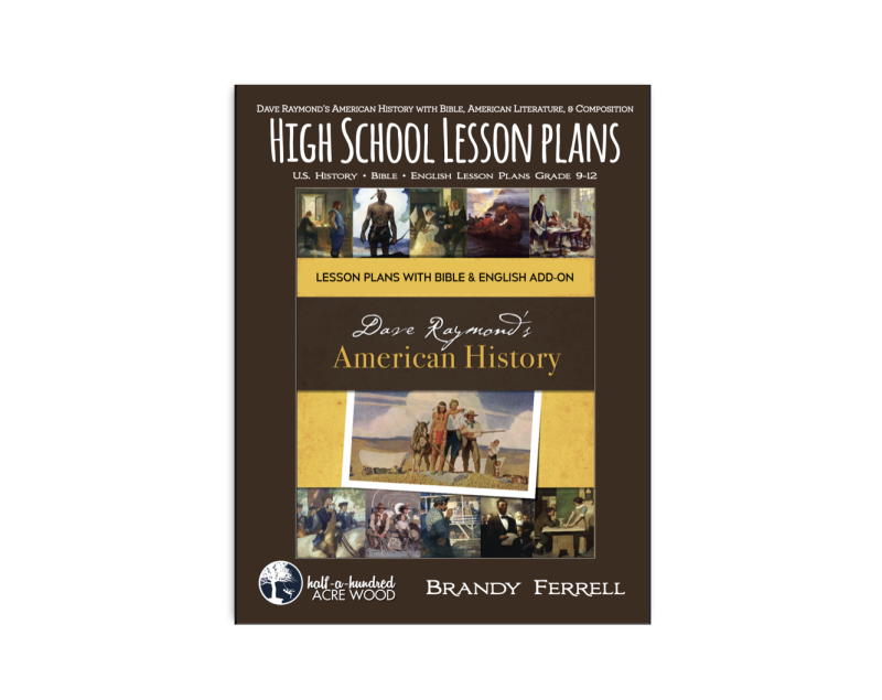 This one-year (36-week) high school-level curriculum guide provides lesson plans for up to three high school subjects: Bible, American History, and English. This plan may be used for just a history credit or, with the added Bible and English composition/literature assignments, it may be used to fulfill a credit in each of these three subjects using Dave Raymond’s American History as a framework.
