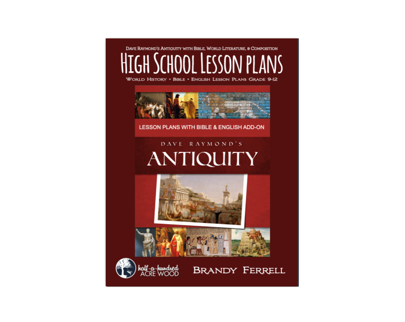 This one-year (36-week) high school-level curriculum guide provides lesson plans for up to three high school subjects: Bible, Ancient World History, and English. This plan may be used for just a history credit or, with the added Bible and English composition/literature assignments, it may be used to fulfill a credit in each of these three subjects using Dave Raymond’s Antiquity as a framework.